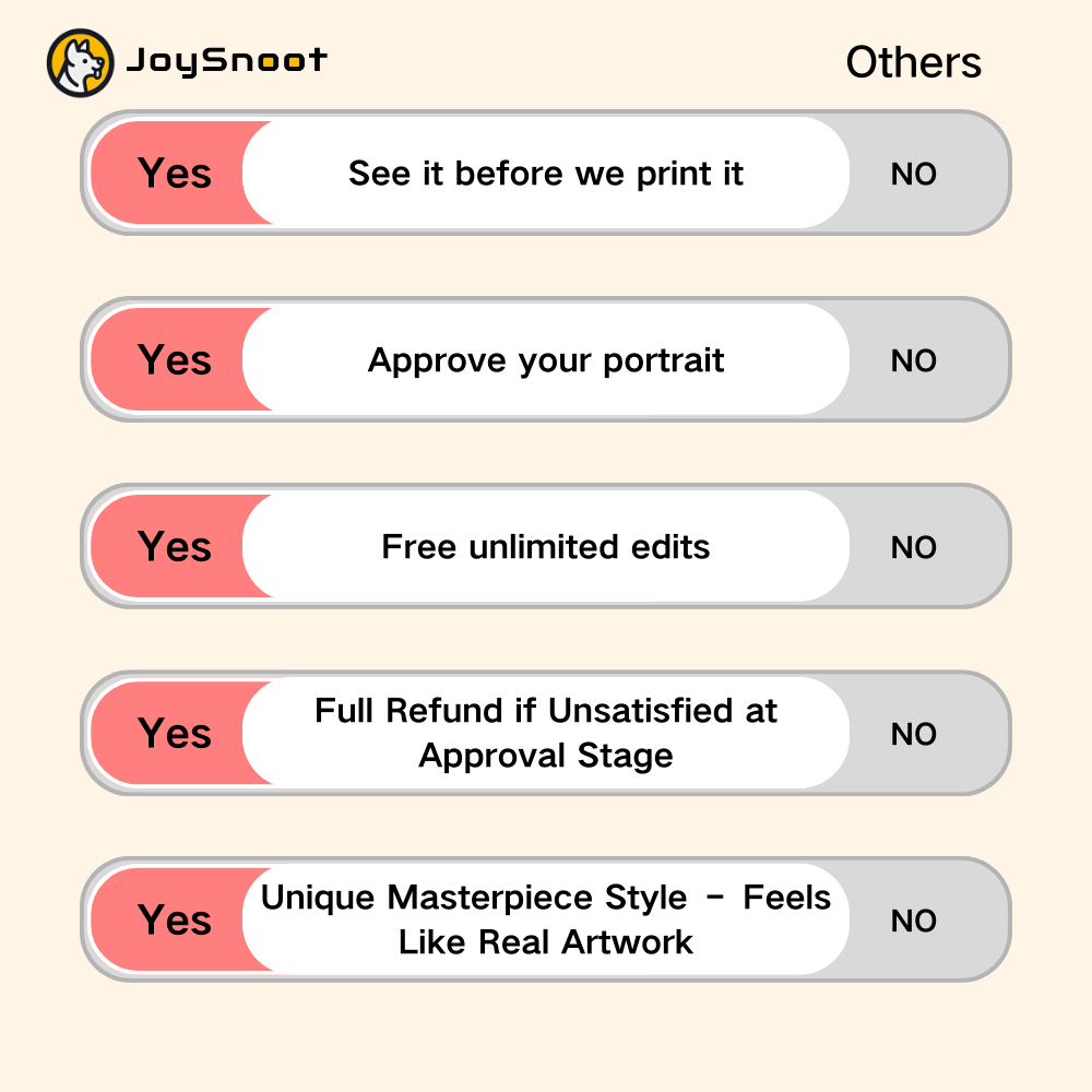 Your satisfaction is our top priority, and we want to ensure that you are satisfied with the portrait of your pet. If you are not completely satisfied with the initial digital draft, please let us know, and our artists will make the necessary adjustments. We offer unlimited revisions at no extra cost. So you can buy with confidence.