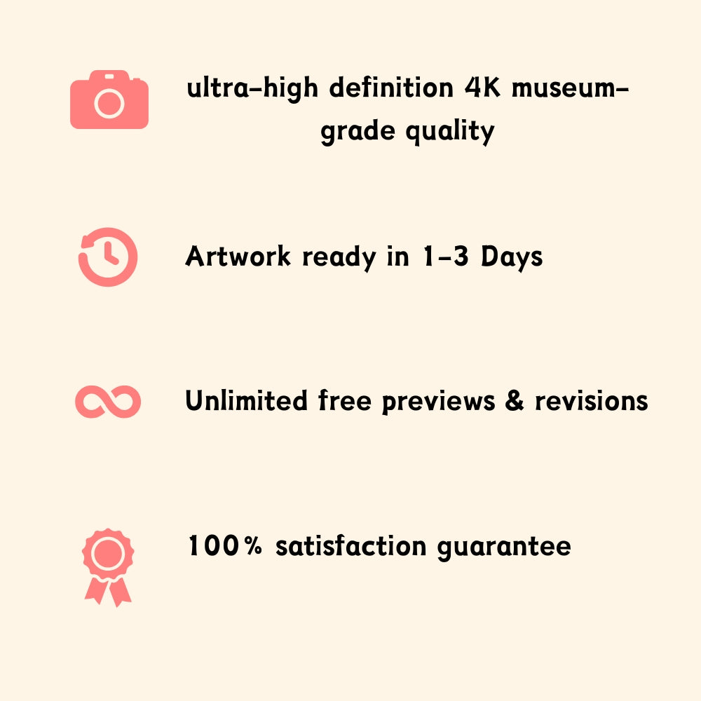 ✍️ Artist correction: The artist will adjust details such as eyes/hair based on your pet's feedback unlimited times